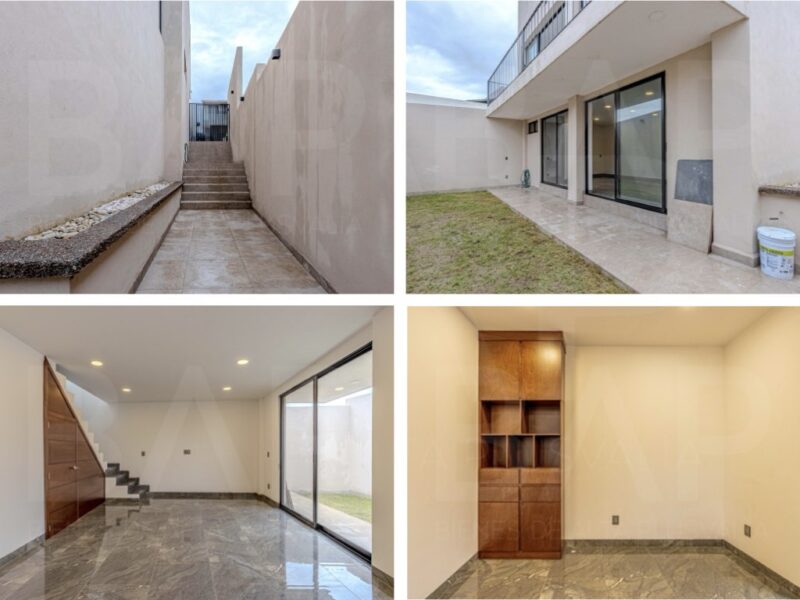 Planta baja: 1 baño completo, estudio independiente, sala, comedor, cocina, jardín interno y terraza.