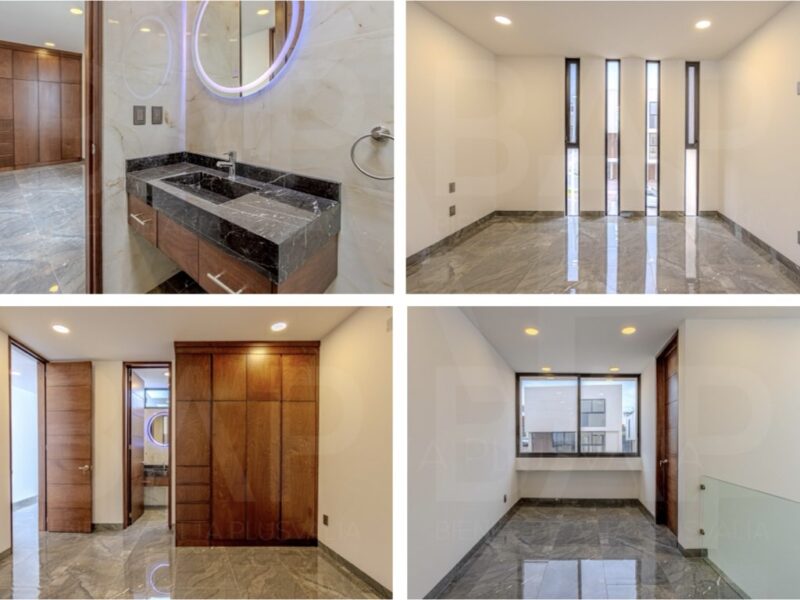 Planta Alta: 3 recámaras cada una con baño y principal con vestidor y cuarto de servicio.