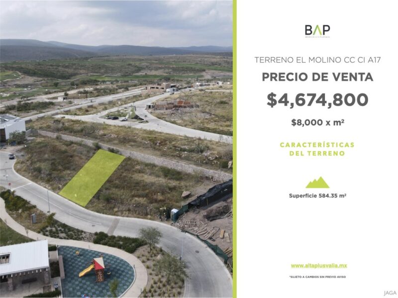 Terreno en venta El Molino CC CI A17 Superficie: 584.35